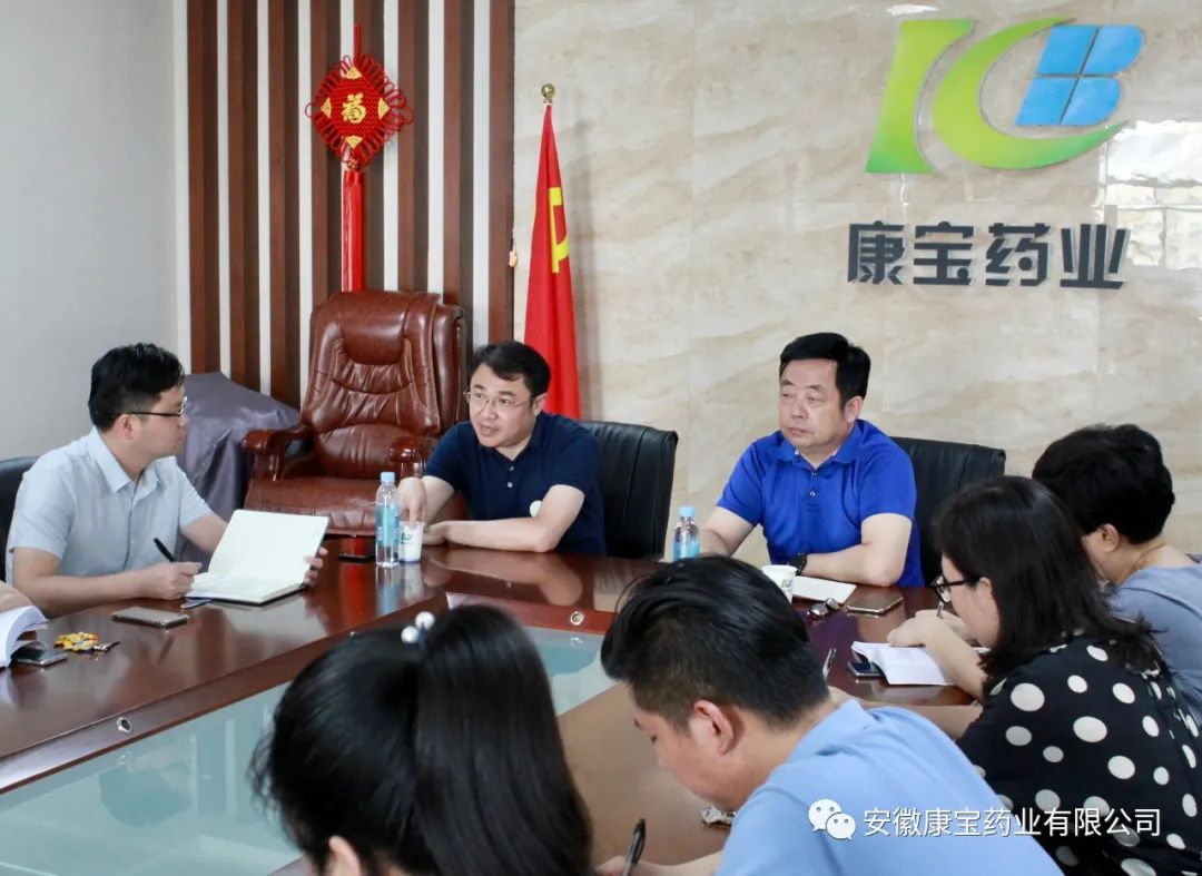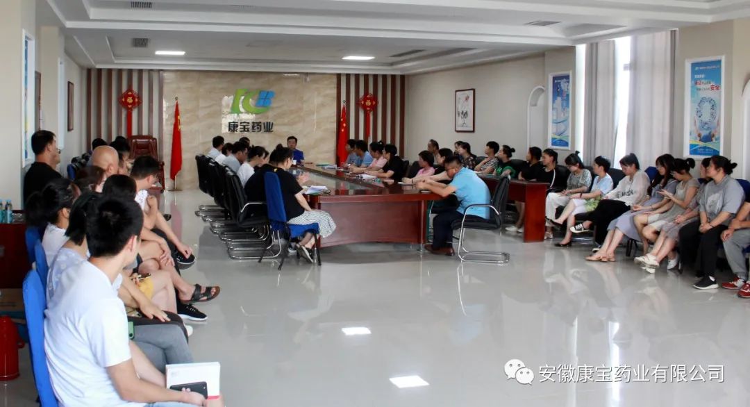 2020年8月11日下午,醫(yī)院集團總經(jīng)理江永強來安徽康寶藥業(yè)有限公司召開全體員工會議??祵毸帢I(yè)董事長朱興林及全體員工參加此次會議。